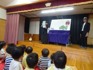 PONOPONOさん(髙橋司先生、髙橋小百合先生)をお迎えし、未入園児親子、保育園児とともに会場が一体となるパネルシアターの世界に引き込まれました… 目をきらきらさせて、ステージにくぎ付け。わくわくドキドキ、心がとても動く素敵な体験をさせていただきました。